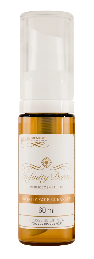 Transforme sua rotina de cuidados com a pele em um verdadeiro momento de luxo e autocuidado com o Infinity Face Cleanser da InfinityDerm Dermocosméticos. Este mousse de limpeza é um produto hipoalergênico que foi cuidadosamente desenvolvido com ingredientes naturais, como a delicada Flor da Camomila e a poderosa Aloe Vera, para proporcionar uma limpeza suave e eficaz, sem comprometer a barreira natural da sua pele. Imagine um produto que não apenas limpa, mas também acalma e hidrata! Criado por especialista em Alergia, o Infinity Face Cleanser é a escolha perfeita para todos os tipos de pele.